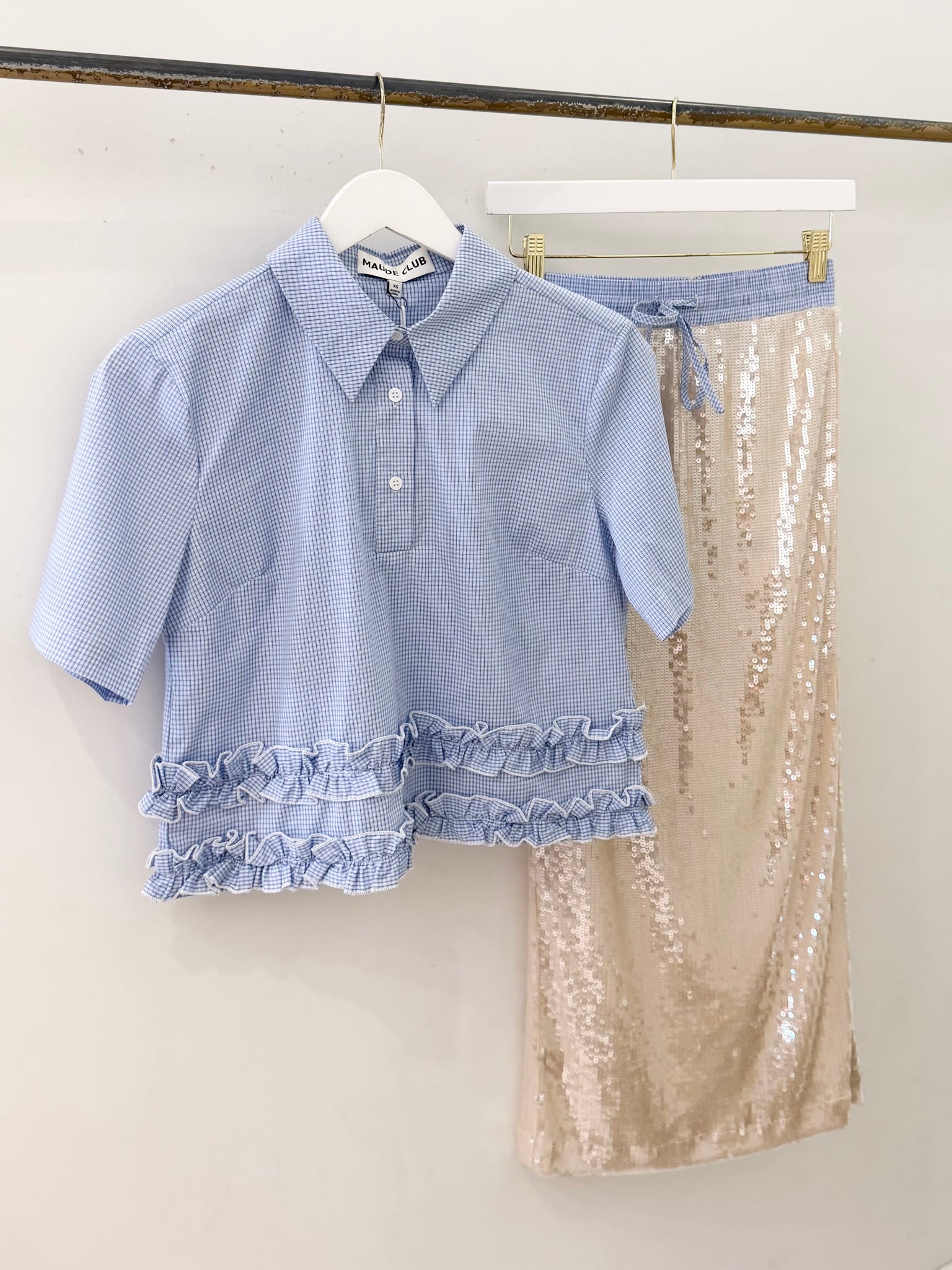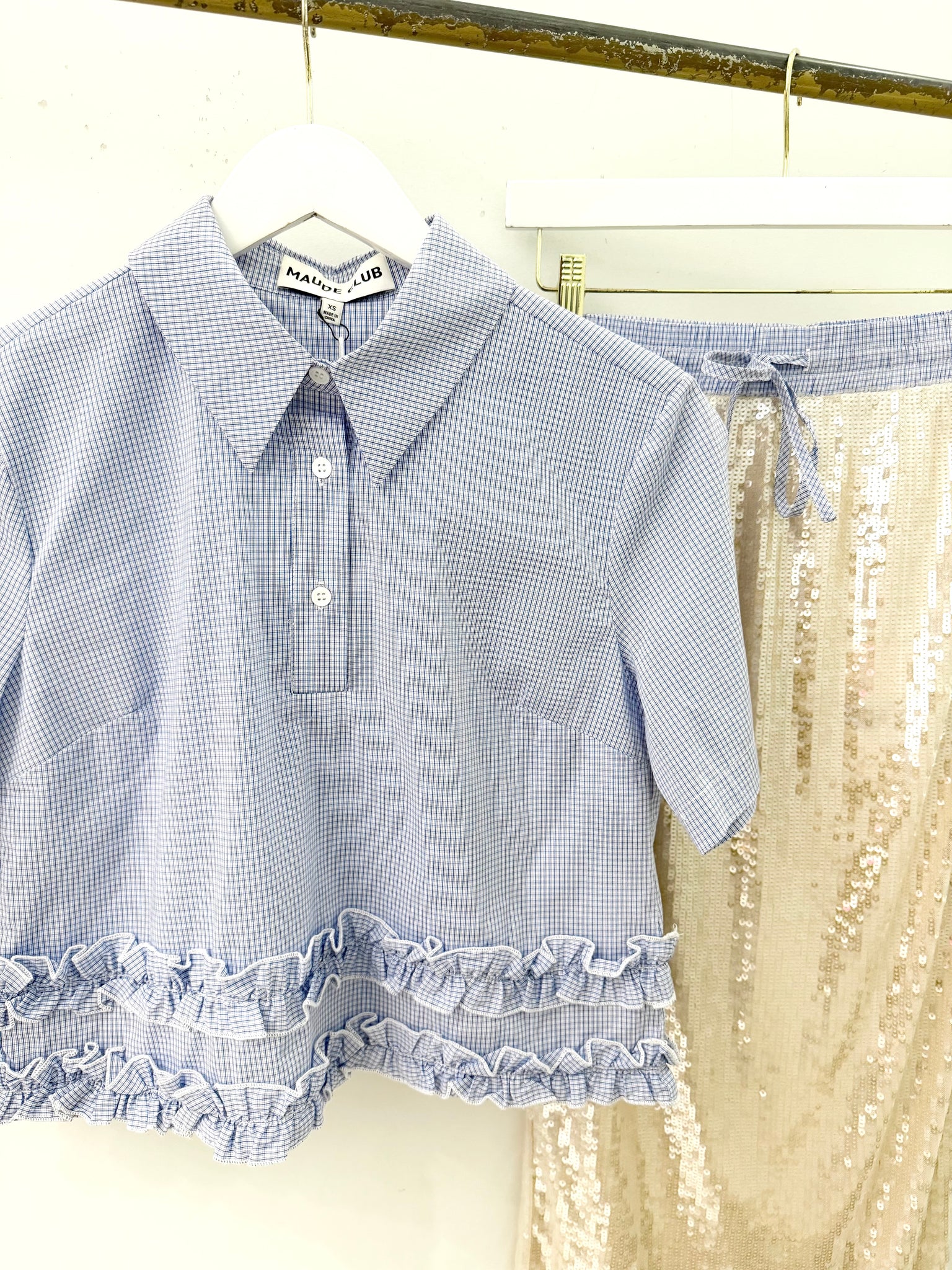 Blue Plaid Ruffle Collared Crop