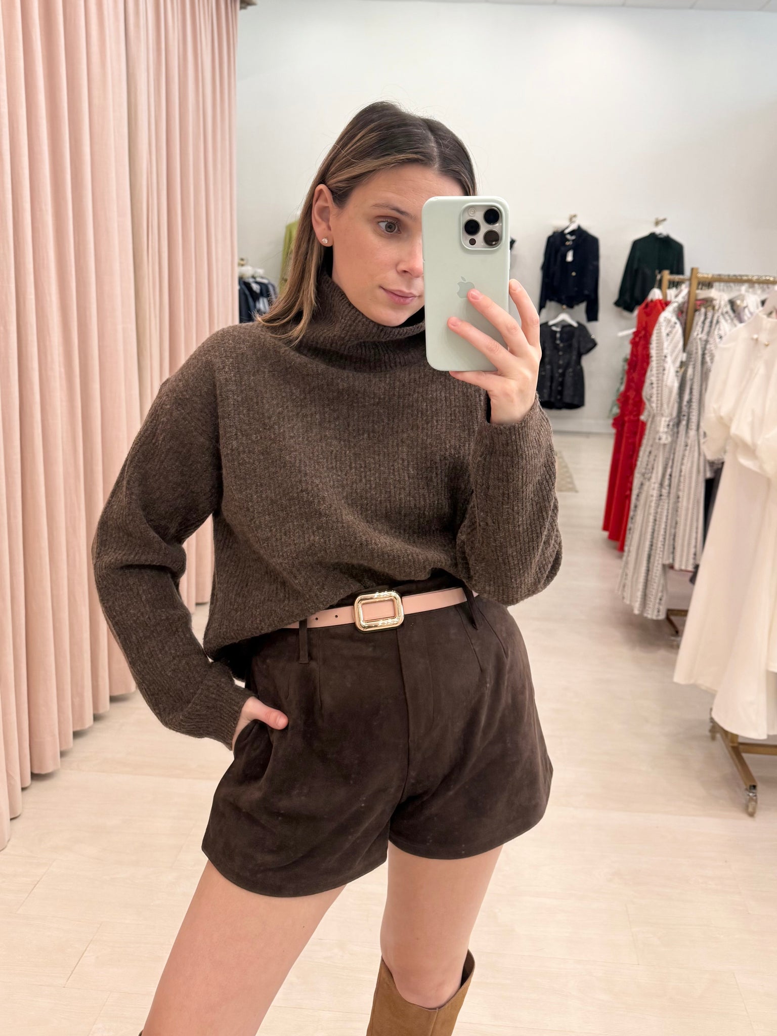 Our Suede Shorts feature a high waisted and a buckle closure in the front. Runs true to size.