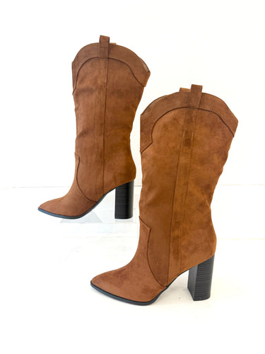 Cognac Suede High Heel Boot