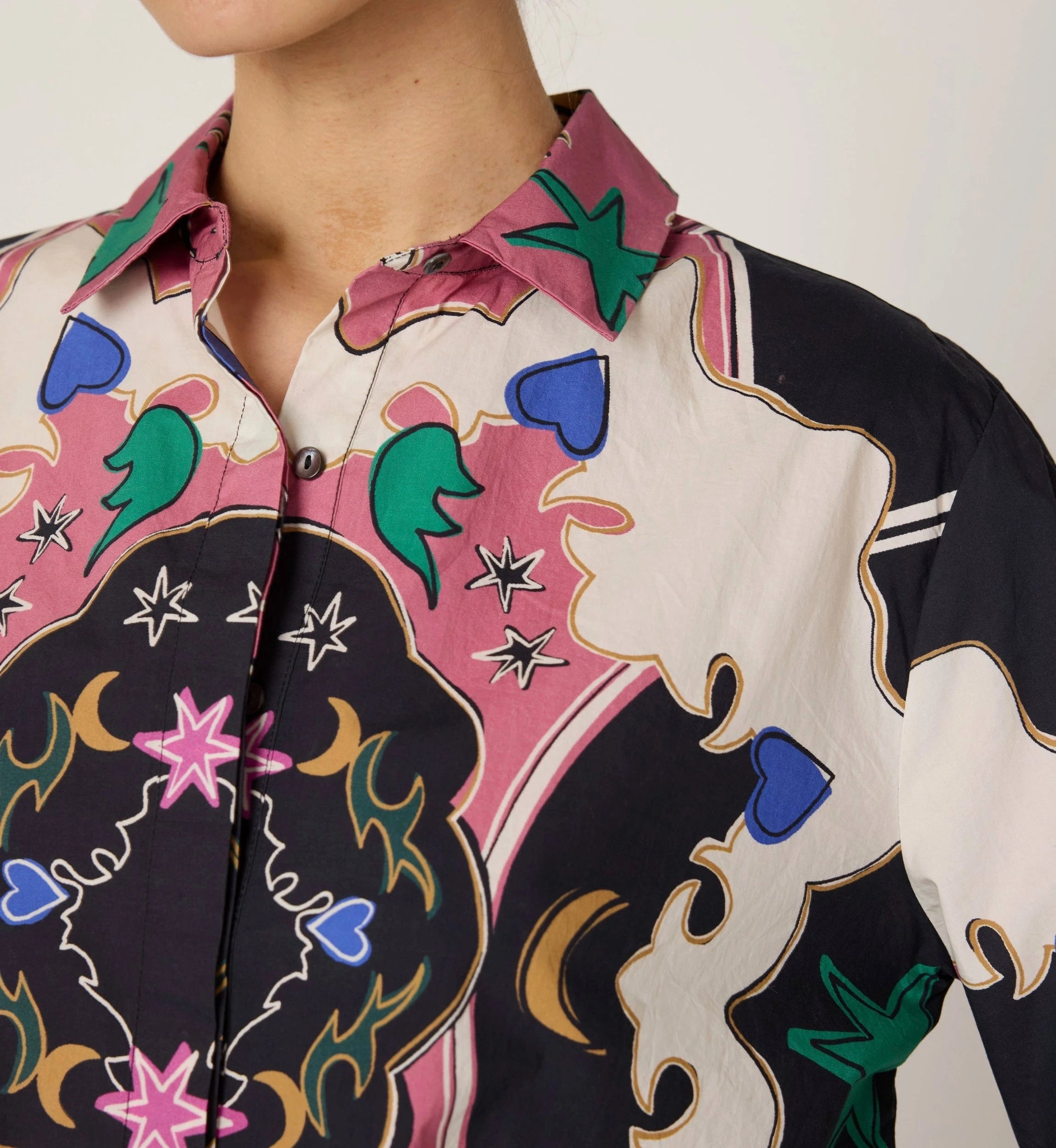 Ethically handmade in India from 100% GOTS-certified organic cotton, the Zoya Blouse brings effortless sophistication to your sustainable wardrobe. This long-sleeve button-down top features an elegant collar, extended cuffs, and an artful print that adds a bold yet refined touch. Pair it with your favorite Cleobella bottoms for a polished, statement-making look that transitions seamlessly from day to night.