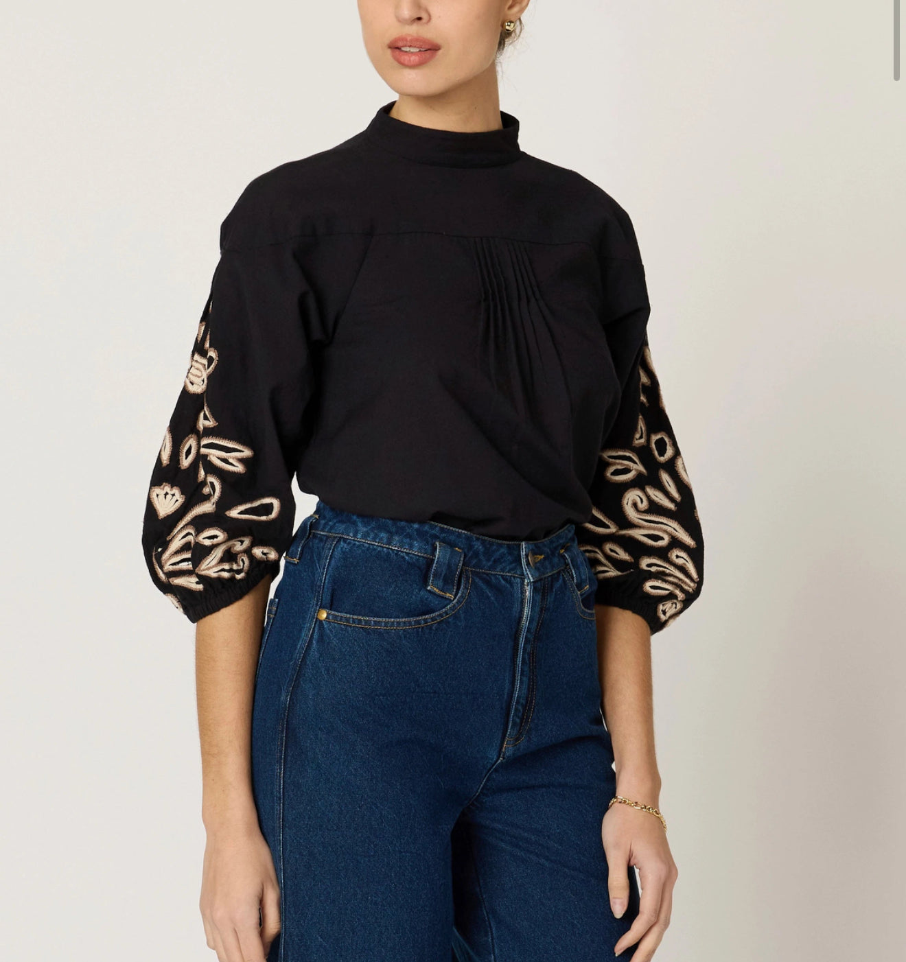 The Clarissa Blouse is effortlessly chic and sustainably crafted, ethically handmade in India from a breathable cotton-linen blend. This timeless blouse features elasticated 3/4 sleeves with delicate embroidery, pintuck detailing at the front, and a keyhole button closure at the back for a polished finish. Lightweight and versatile, the Clarissa Blouse pairs beautifully with denim or skirts, making it an elegant staple for any season.