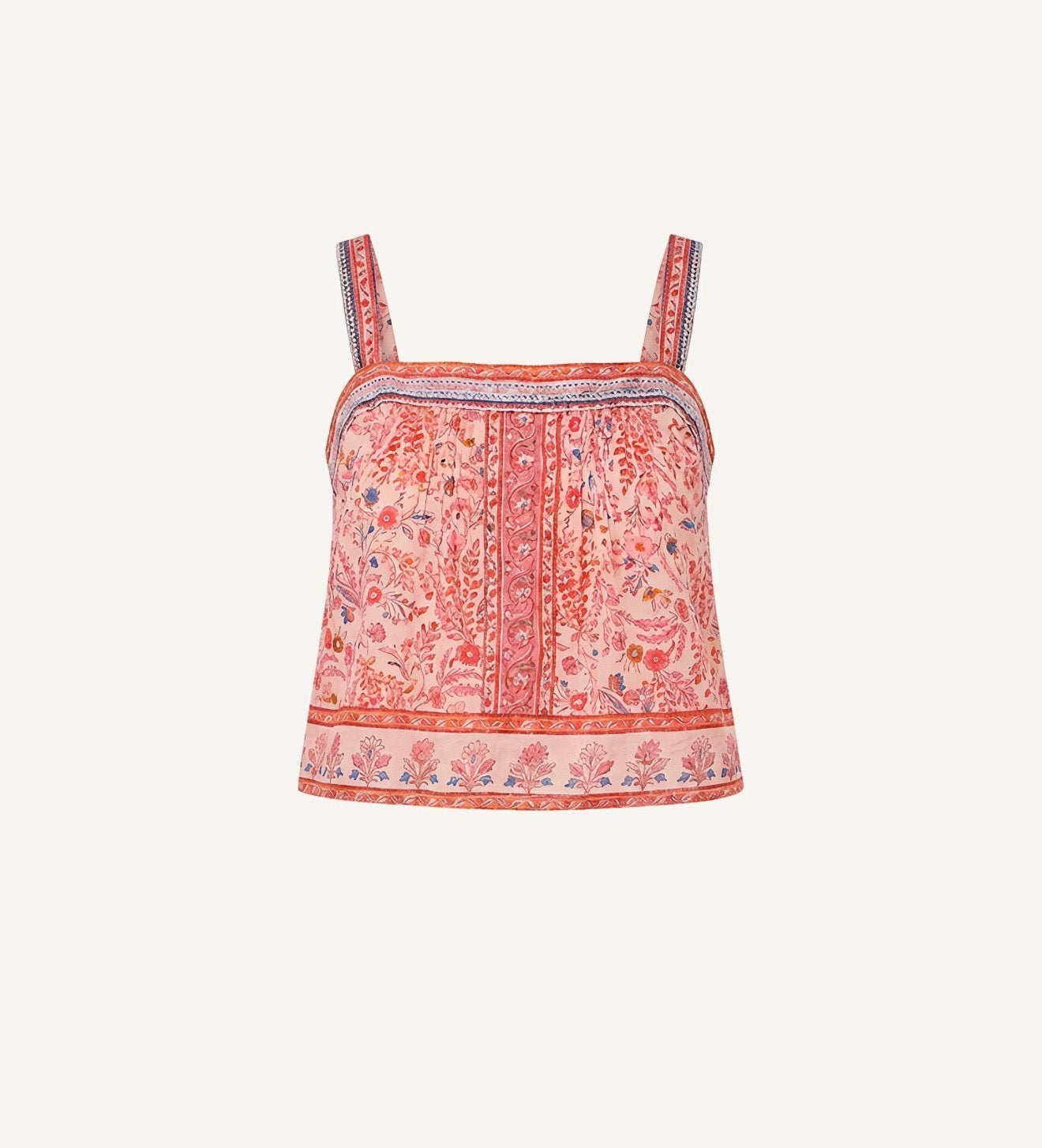 The Yumi Top is an easy spring staple, perfect for pairing with the matching Elie Ankle Skirt or your favorite denim. Crafted from 100% GOTS certified organic cotton mul mul, this slip on style features a cropped, relaxed shape finished with a charming border print for a light, effortless feel.